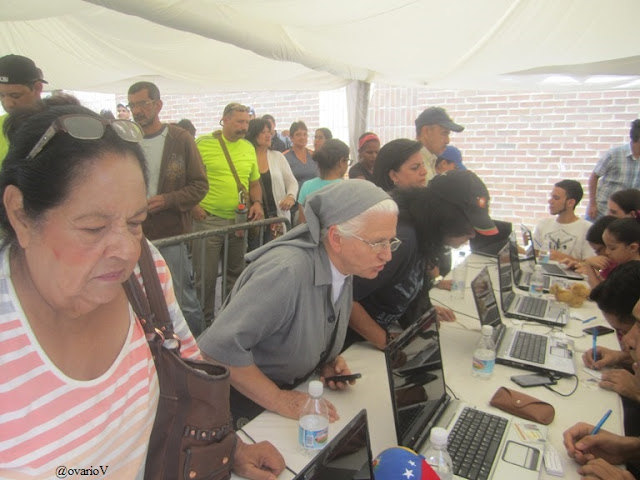 La cola más larga, hoy. El ánimo indescriptible. En Caracas pocos puntos para validar la firma en medio de una tiranía, pero quedó demostrado una vez más, que el pueblo de Venezuela es el más pacífico del mundo.