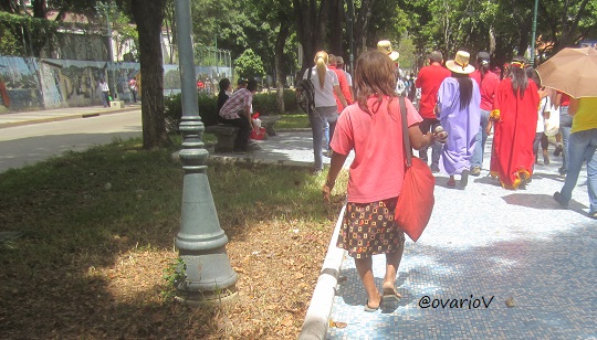 Para los chavistas no existe el Día de la Raza, prefieren celebrar el día de la Resistencia Indígena, sin embargo, en esta marcha se puede apreciar los indígenas indigentes que andan por las calles en condiciones de miseria, marcharon vendiendo sus pulseras y cositas que hacen para sobrevivir.